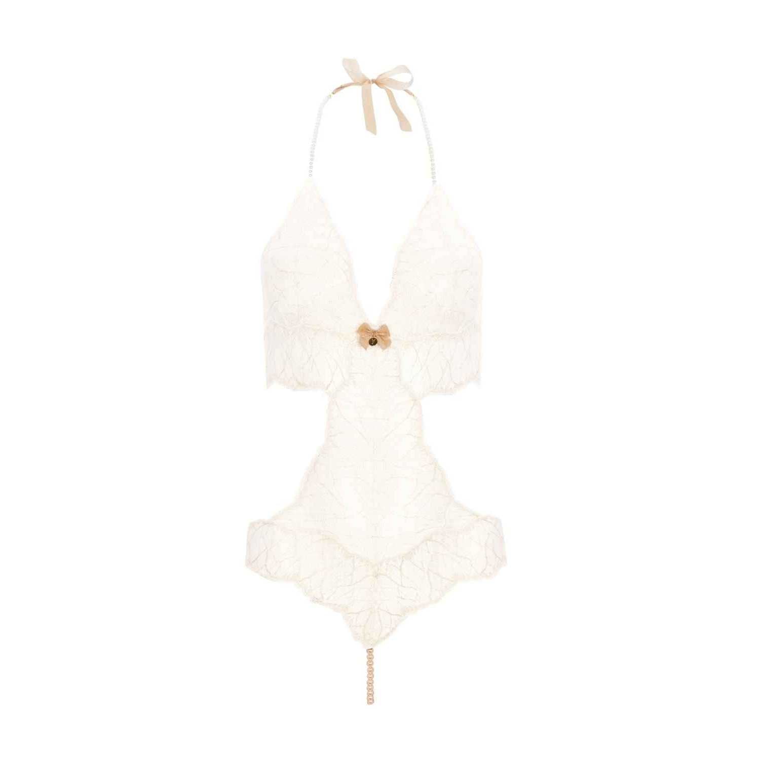 - Perlenstring (in Form eines Bodys) in transparentem Look aus elastischer italienischer Spitze