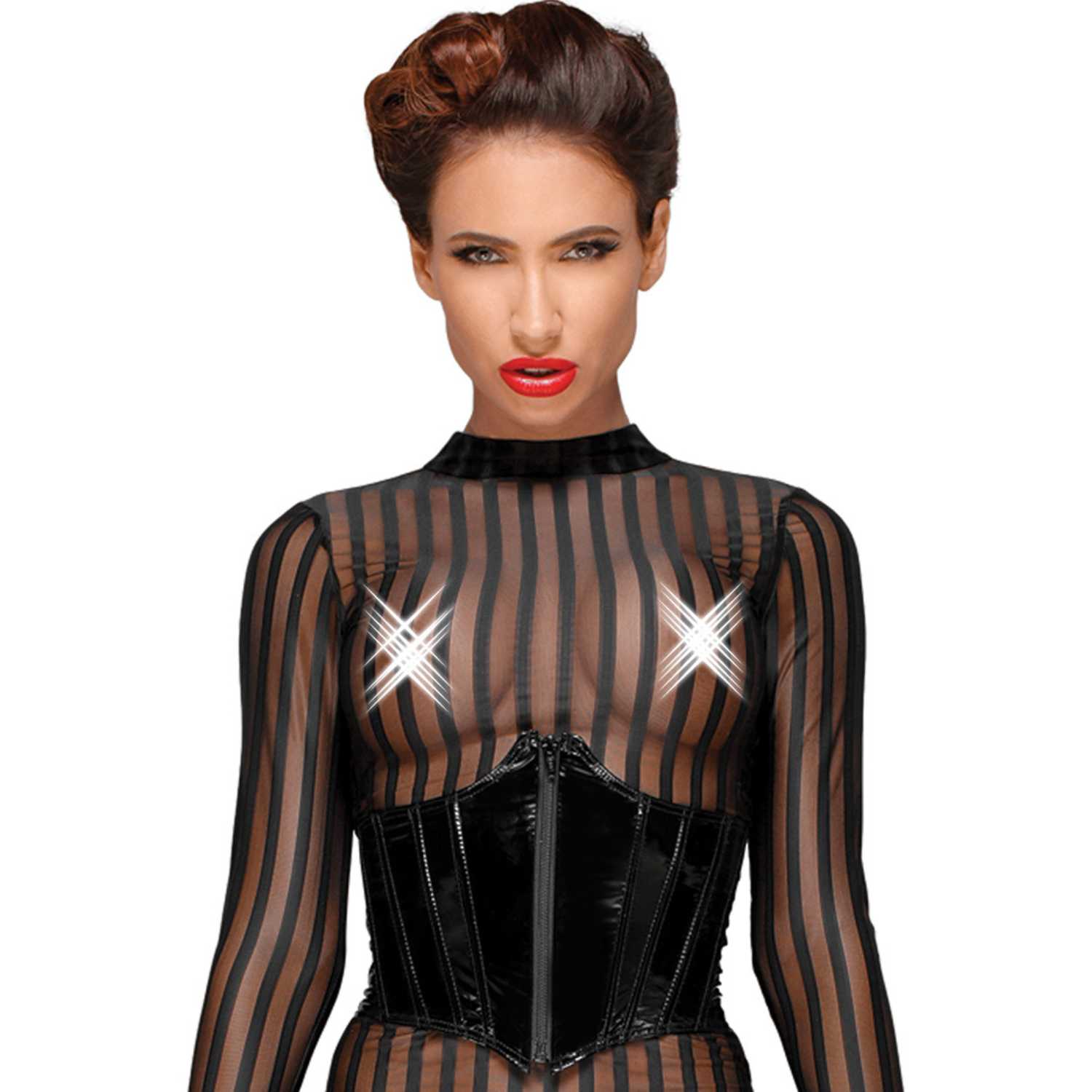 Ob für heiße Nächte, erotische Fotoshootings oder als Eyecatcher für dein Outfit – dieses schwarze PVC Korsett zieht alle Blicke auf sich!