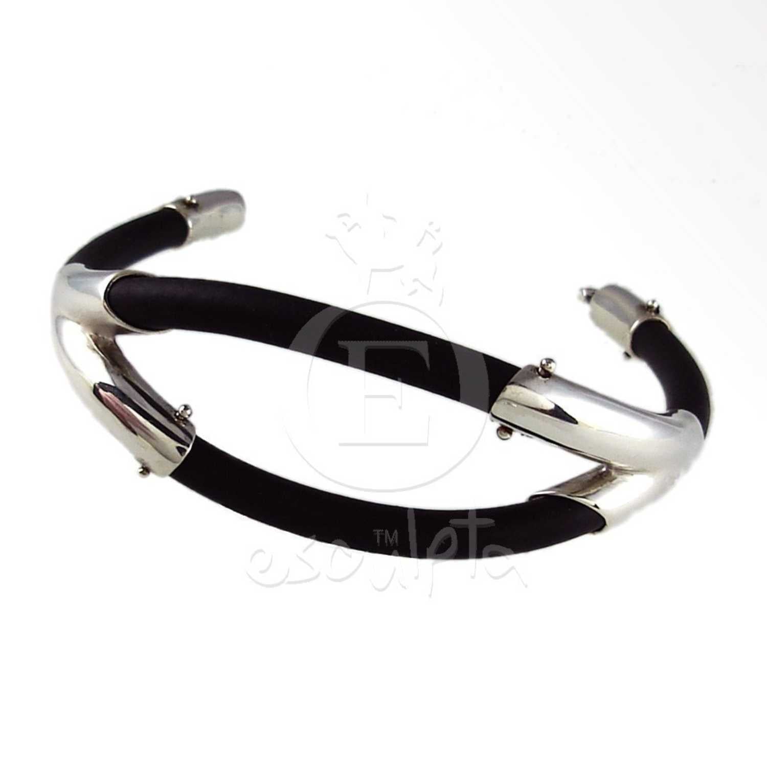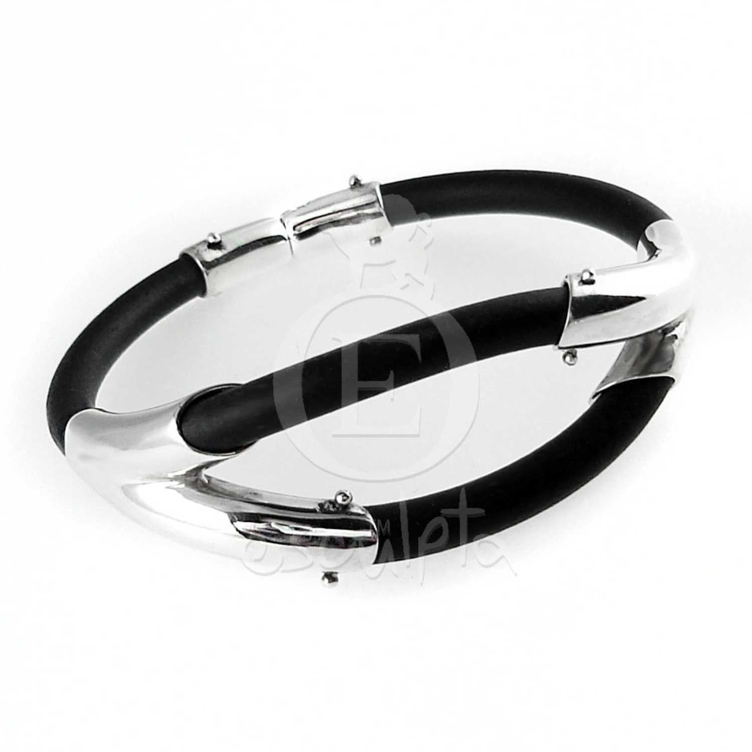 Material: Silber/ schwarzes Kautschukband