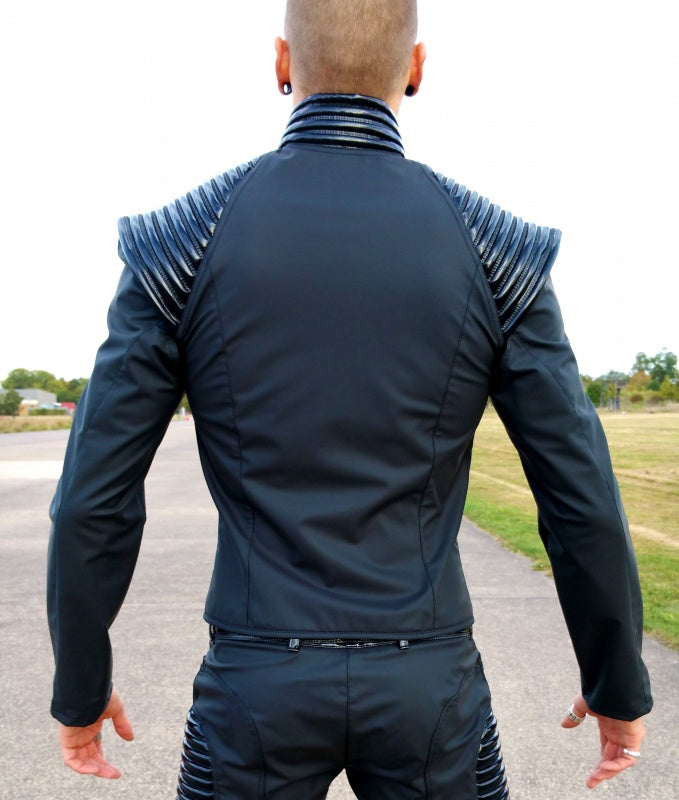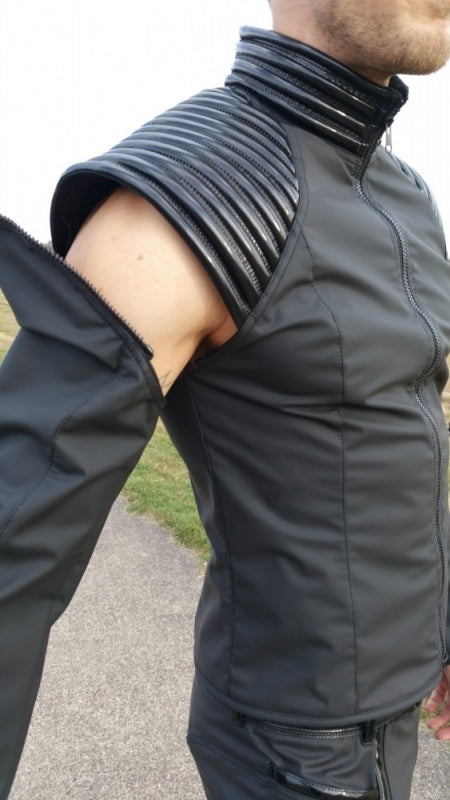 Die Trigo OT ist eine spacige Mischung aus Jacke und/oder Weste. Die Ärmel sind mit Reissverschluß abnehmbar und im Handumdrehen wird aus dieser stylishen Jacke eine Weste. Die Jacke ist nicht zu lang so daß sie mit dem Bund des Unterteils abschließt. Sehr cool in dem für Tatjana Warnecke typischen Matt Basic Kunstleder das sich leicht wie mattes Latex anfühlt. Die in Lack gehaltenen Ribbons geben den entsprechenden Akzent dazu uns sind das typische Markenzeichen!