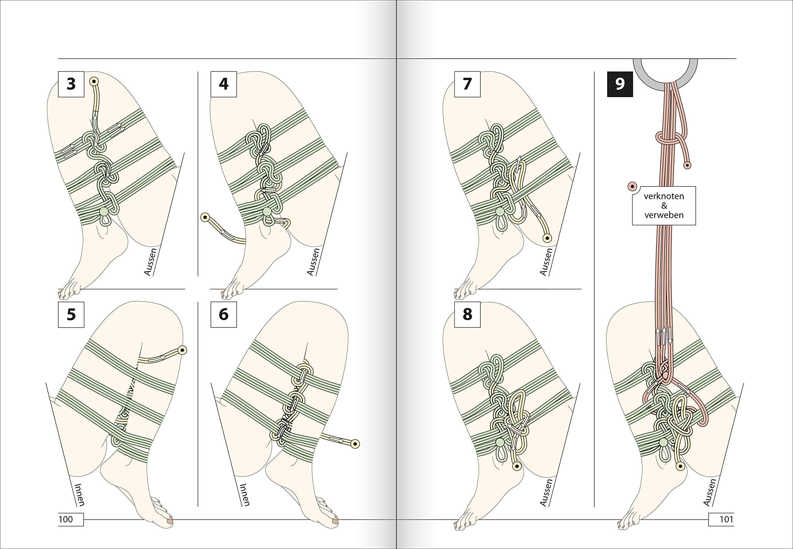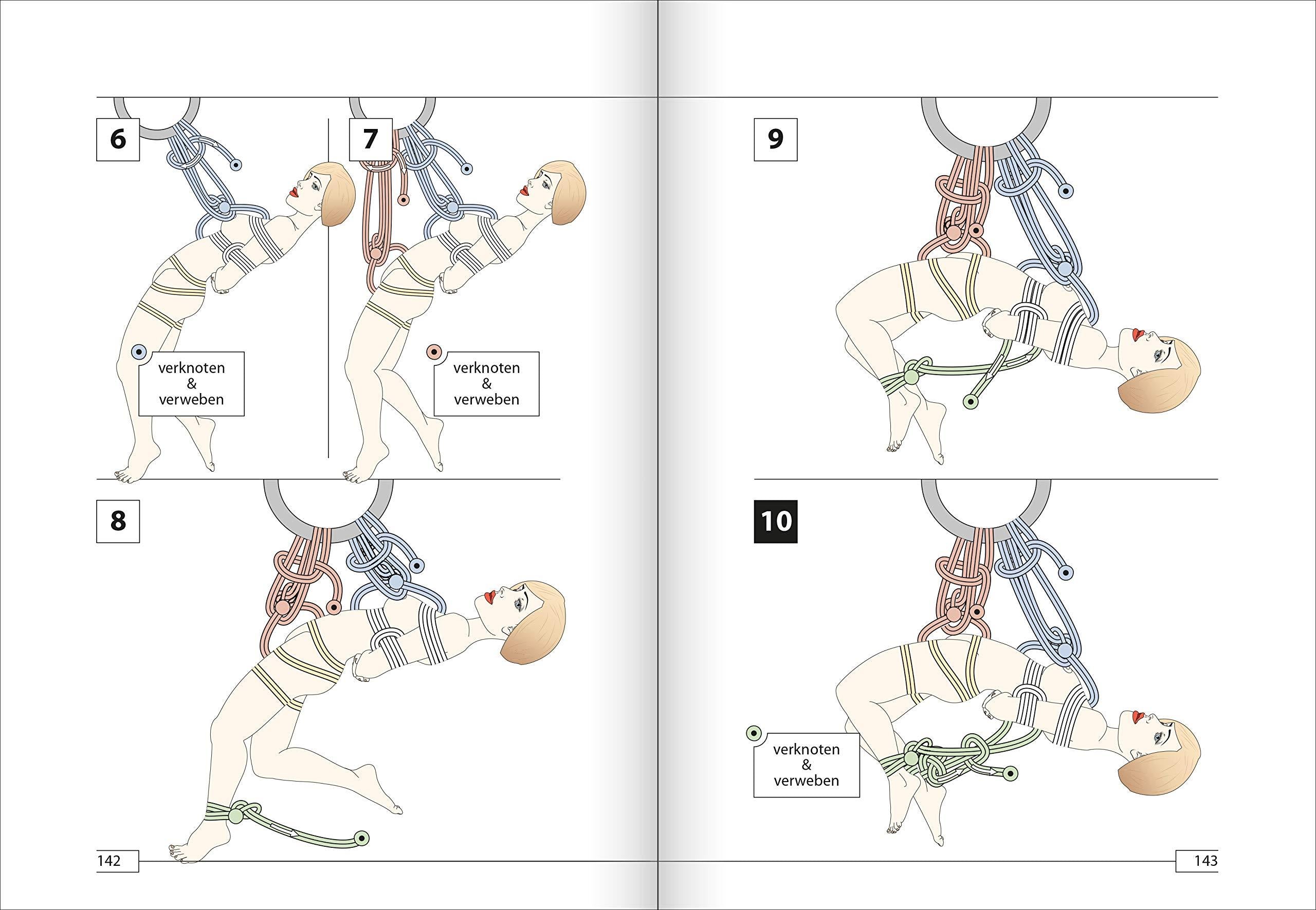 Zum Thema Fesseln mit Seil sind bislang drei Titel erschienen. Der zweite Band "Takate-kote & Oberkörper" ist in deutscher und englischer Sprache und das dritte Buch "Abheben & fliegen" ist in deutscher Sprache erhältlich. Alle drei Bücher sind in der von Hand gebundenen Version und als Taschenbuch erhältlich. Der Inhalt ist bei beiden Ausführungen gleich. Die Bücher unterscheiden sich nur in der Materialwahl, der Machart und natürlich im Preis. Für die eigenen Ideen sind neben den Büchern mit den Fesselanleitungen auch Skizzen & Notizbücher in der handgebundenen Ausführung erhältlich.