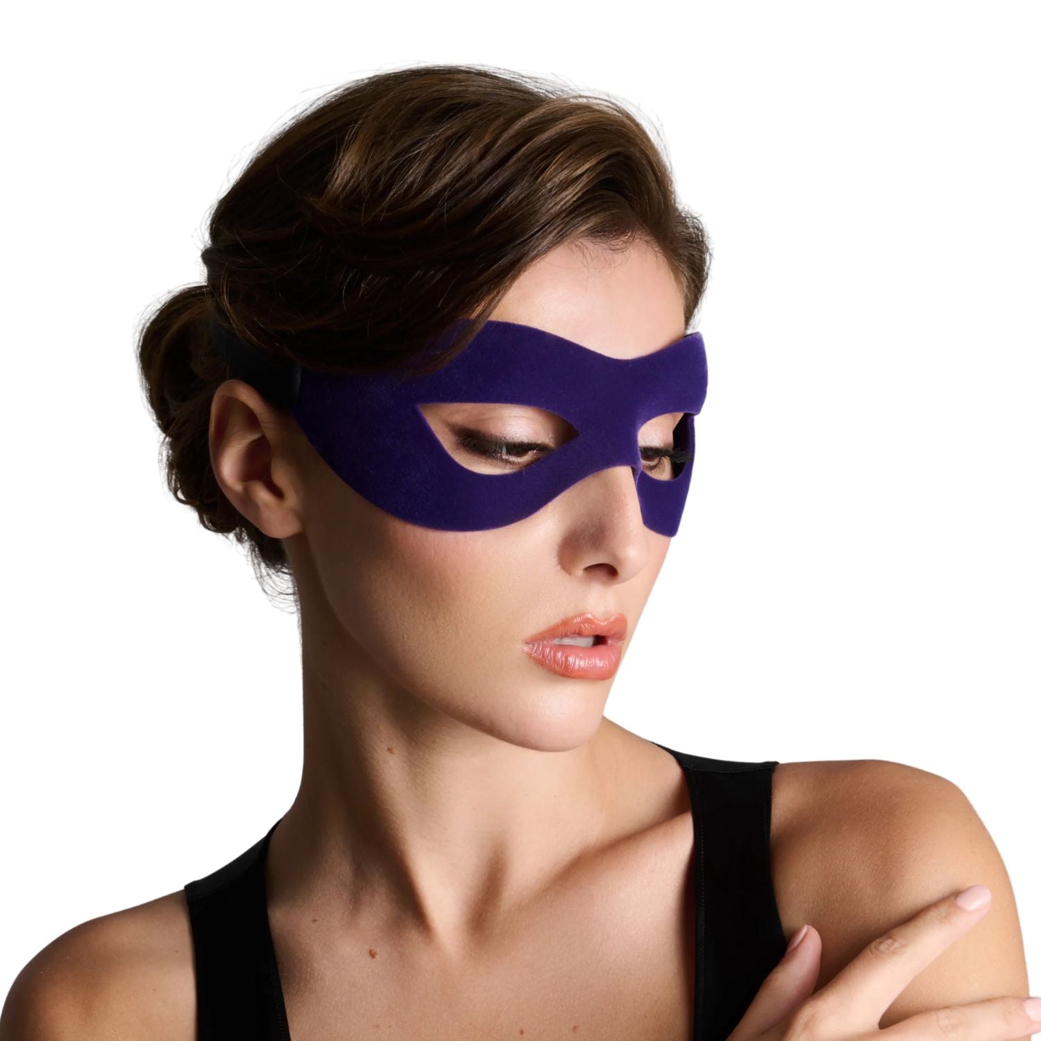 Der edle Samt in intensivem Lila wirkt besonders luxuriös und fühlt sich angenehm weich auf der Haut an. Gleichzeitig sorgt das minimalistische, raffinierte Design dafür, dass Deine Gesichtszüge elegant betont werden und ein geheimnisvoller, stilvoller Look entsteht.