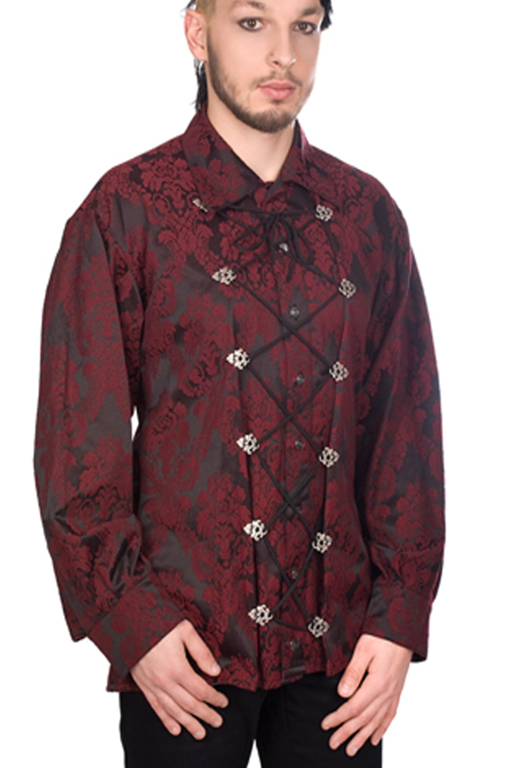 Aderlass Gothic Brokat Herrenhemd / Cremate Shirt bordeaux