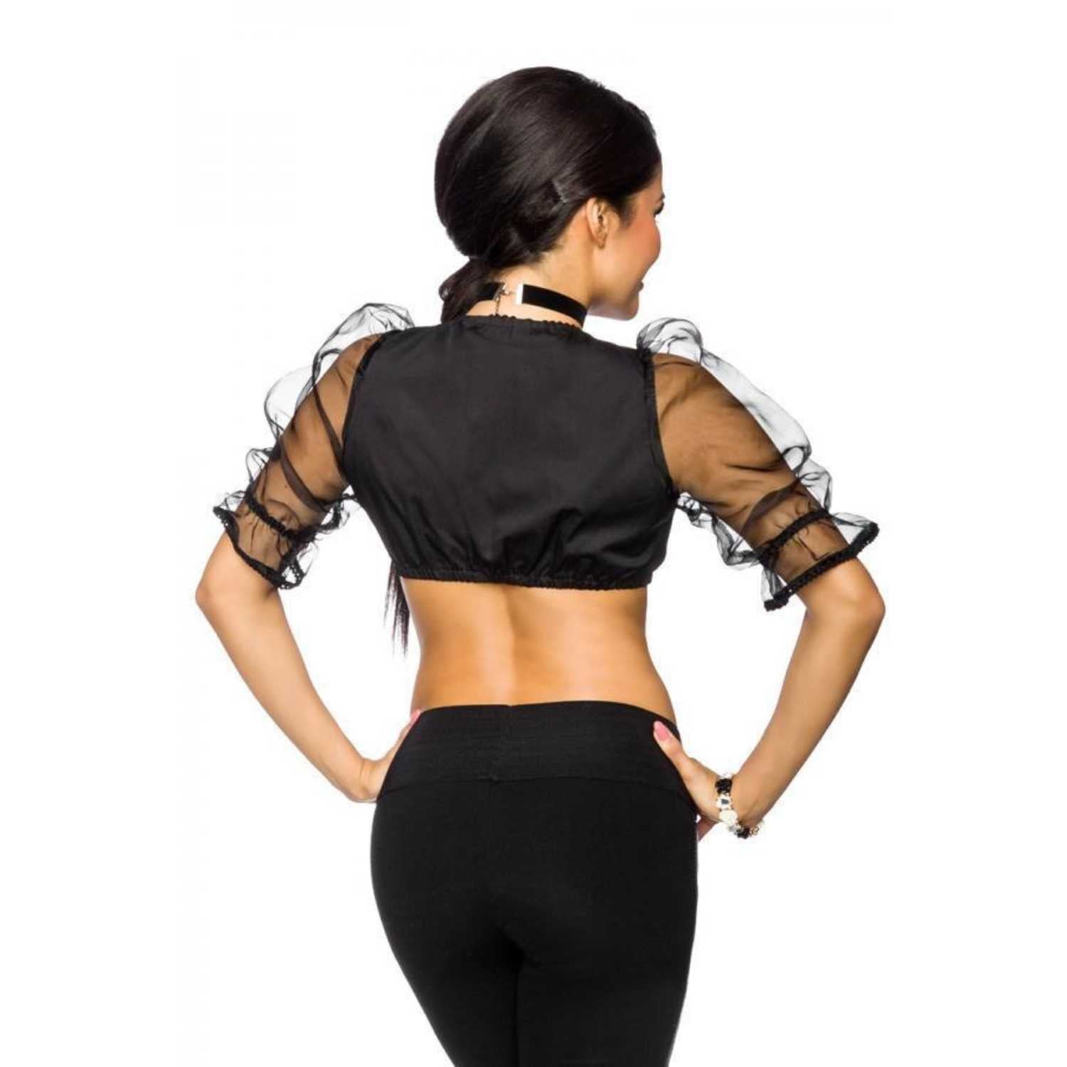 Atixo Dirndl Bluse schwarz mit transparenten Ärmeln
