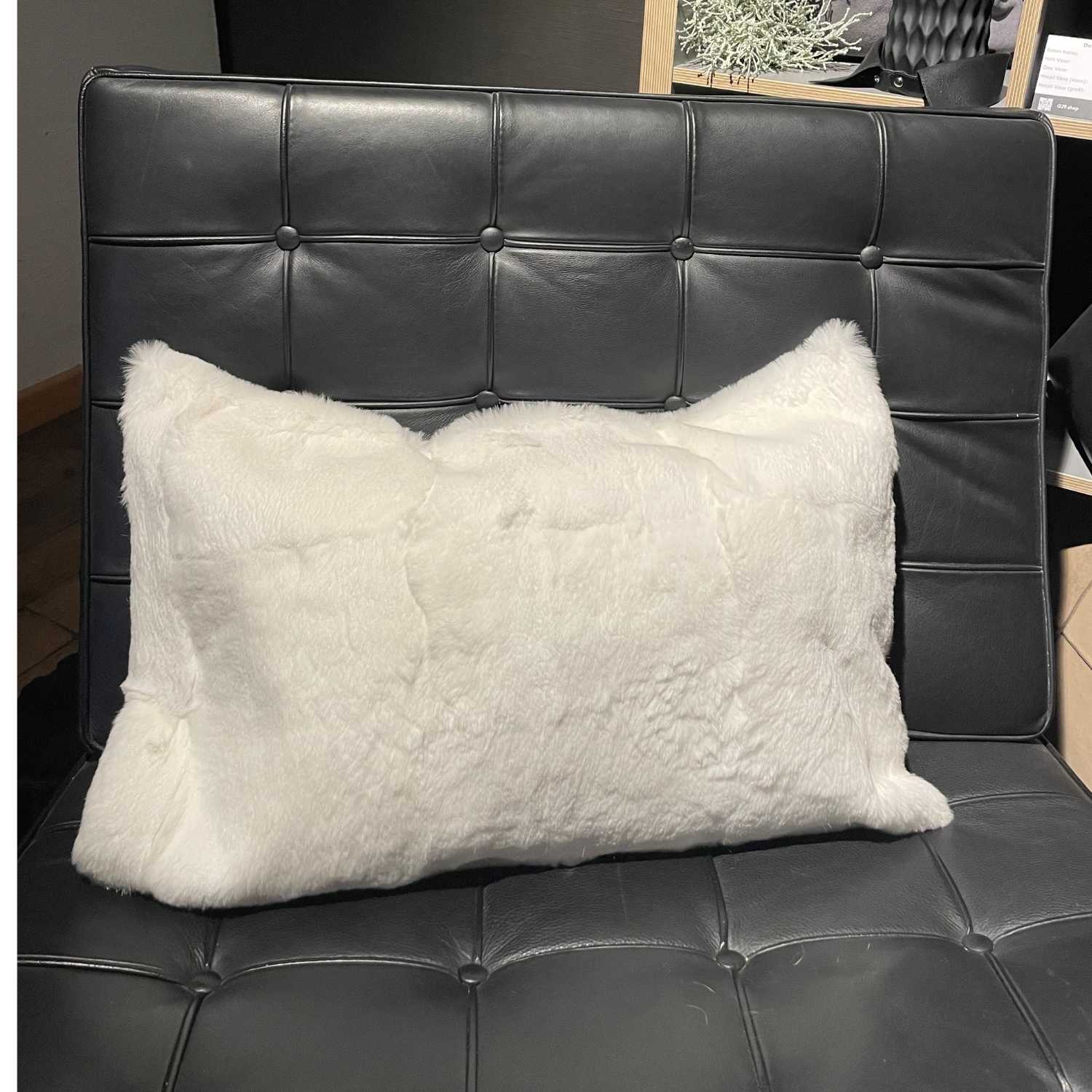 Wir fertigen diesen Kissenbezug aus Rabbit (Hase) die Rückseite ist aus farblich passendem Lamm-Nappa.