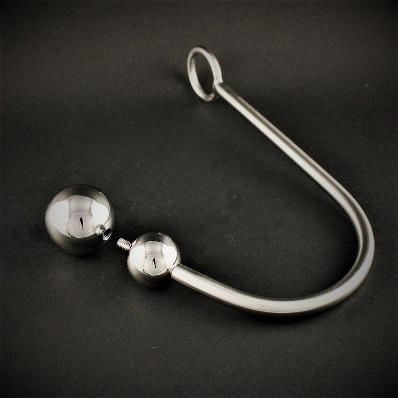 Der Bondagehaken besteht aus massivem Edelstahl. Der Durchmesser der Kugel beträgt 30mm. Die Öse des Hakens hat einen Durchmesser von 30mm. Zur Reinigung kann die Kugel einfach abgeschraubt werden.